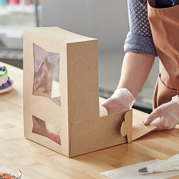 Baker S Mark 9 X 9 X 4 Kraft Auto Popup Window Bakery Box 150 Case
